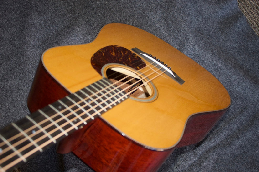 This Huss & Dalton from 2023 was custom made with a thermo-cured Adirondack Spruce top which allows it to exude a robust mature tone that is extremely pleasing. The guitar has been lightly played and remains in excellent condition with only a few very minor dings and scratches. Added bonus, a K & K Pure Mini pickup system has been installed (a passive system with a warm natural sound). Comes with its original Huss & Dalton tweed hard case.